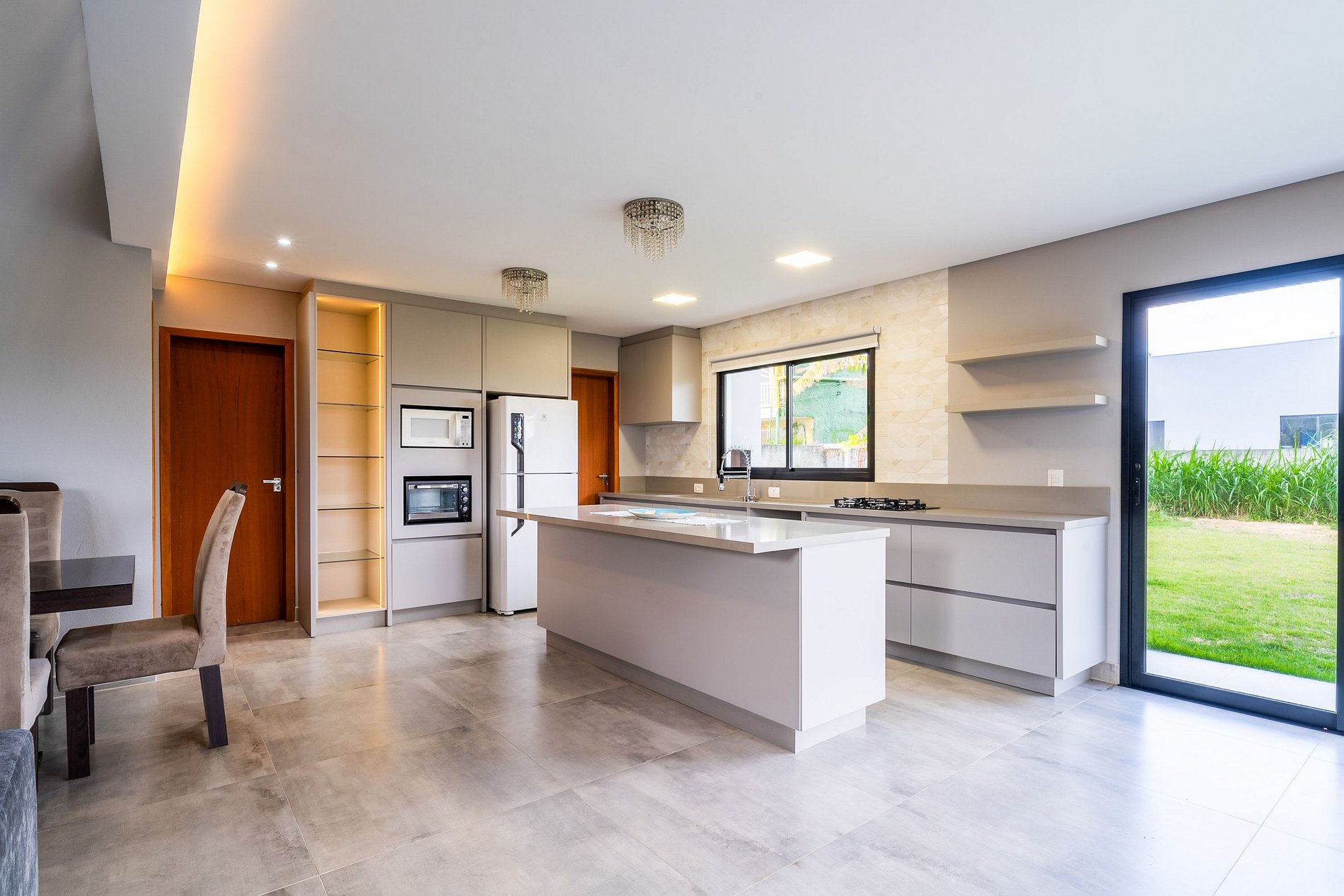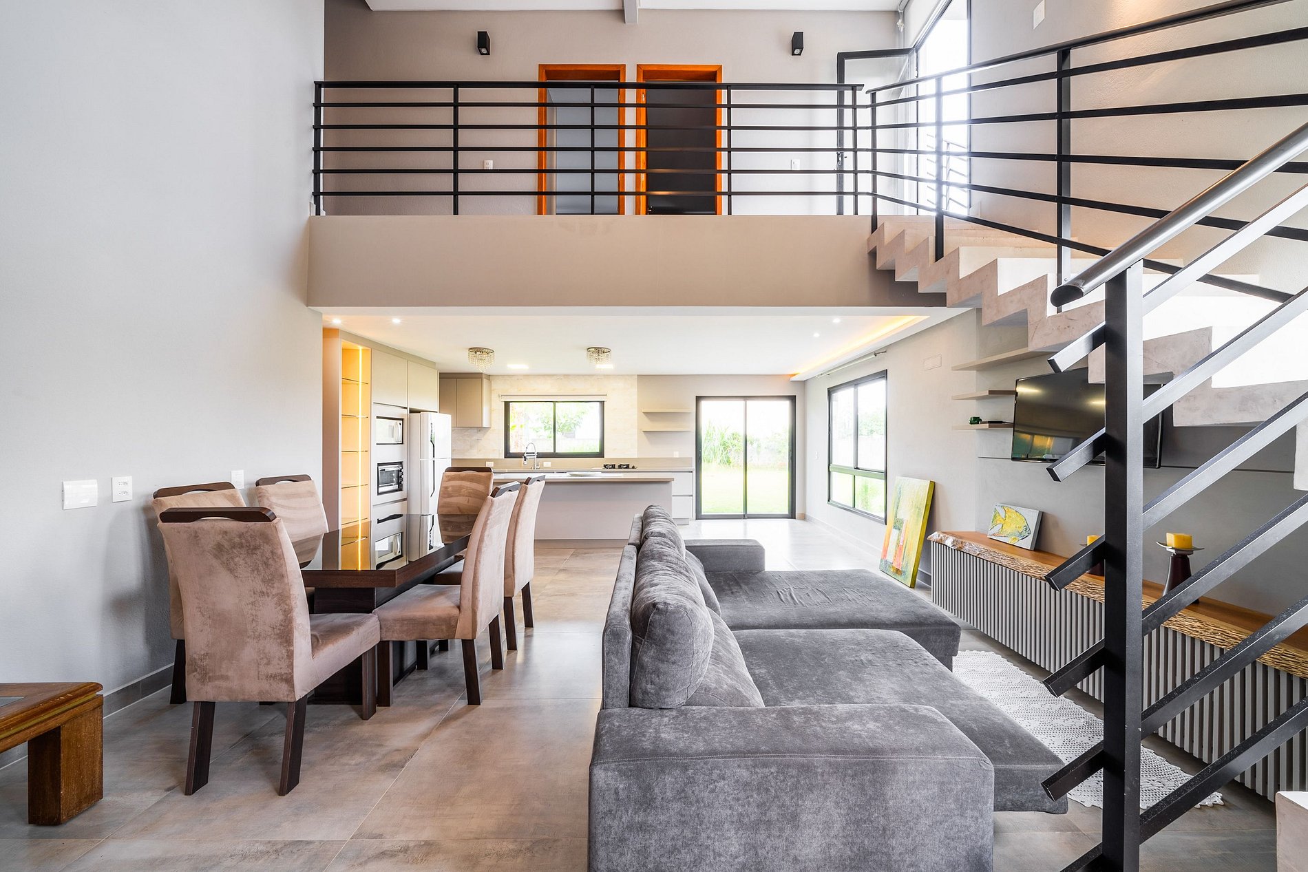 Espaço amplo e arejado: Sala de estar, jantar e cozinha integradas, proporcionando um ambiente aconchegante e convidativo para relaxar e se divertir com a família e amigos.