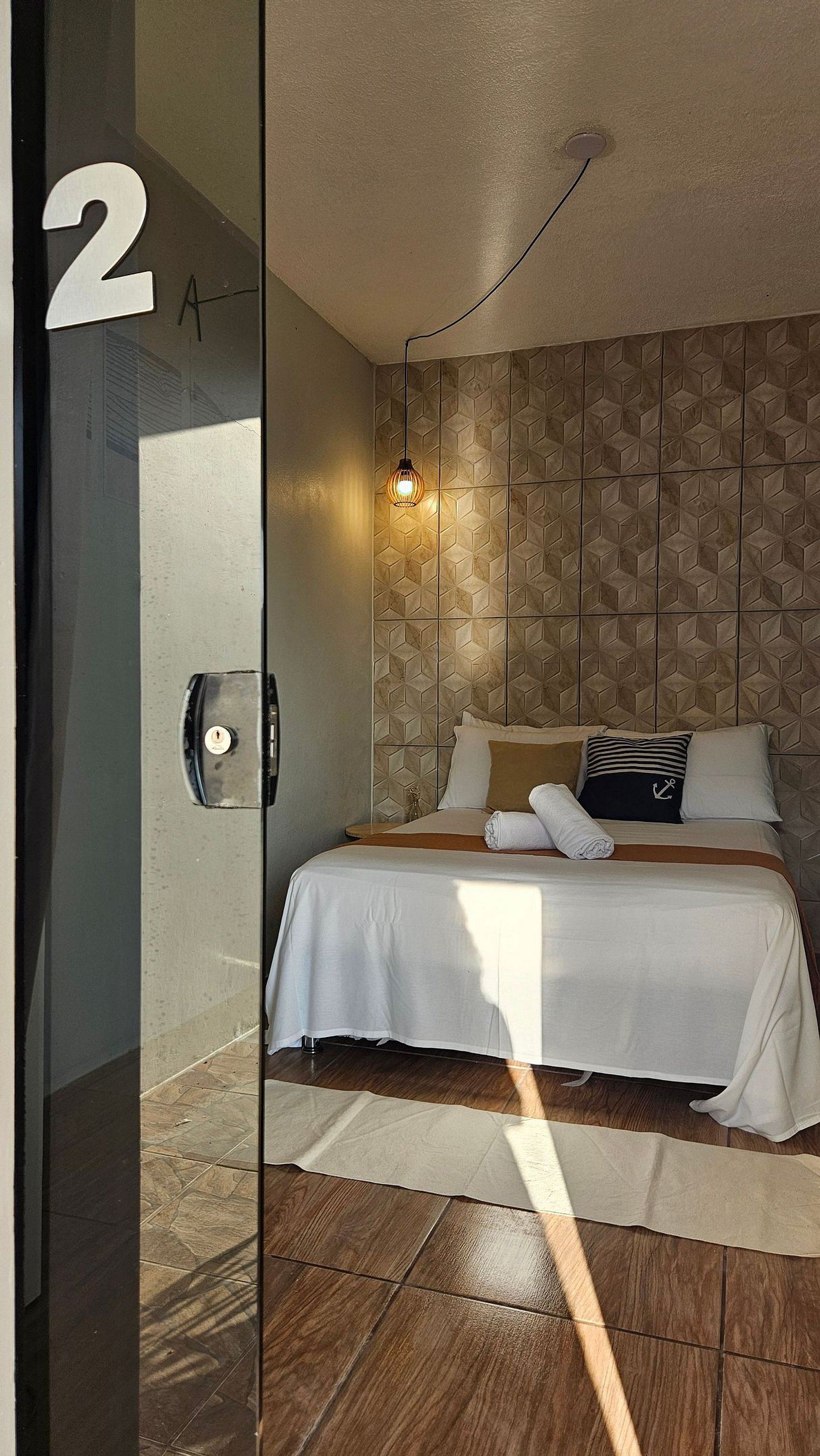 As suítes são privativas, garantindo conforto e privacidade durante a estadia. Cada quarto possui entrada individual e é equipado com itens essenciais para uma experiência prática e agradável.