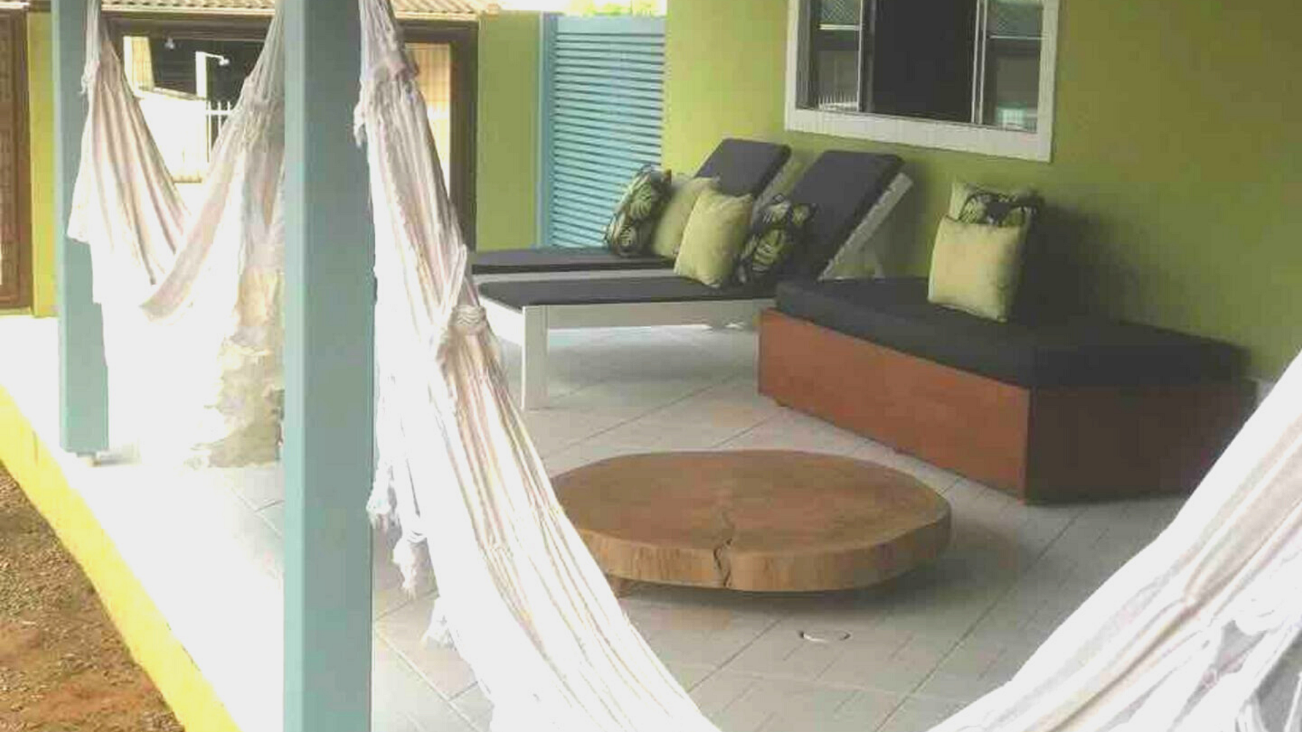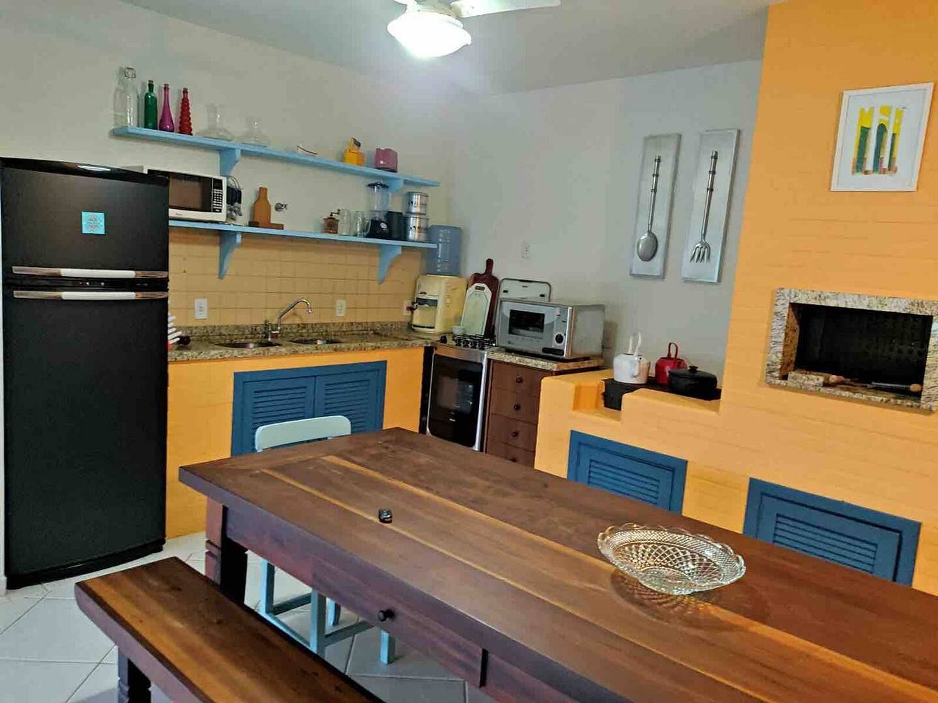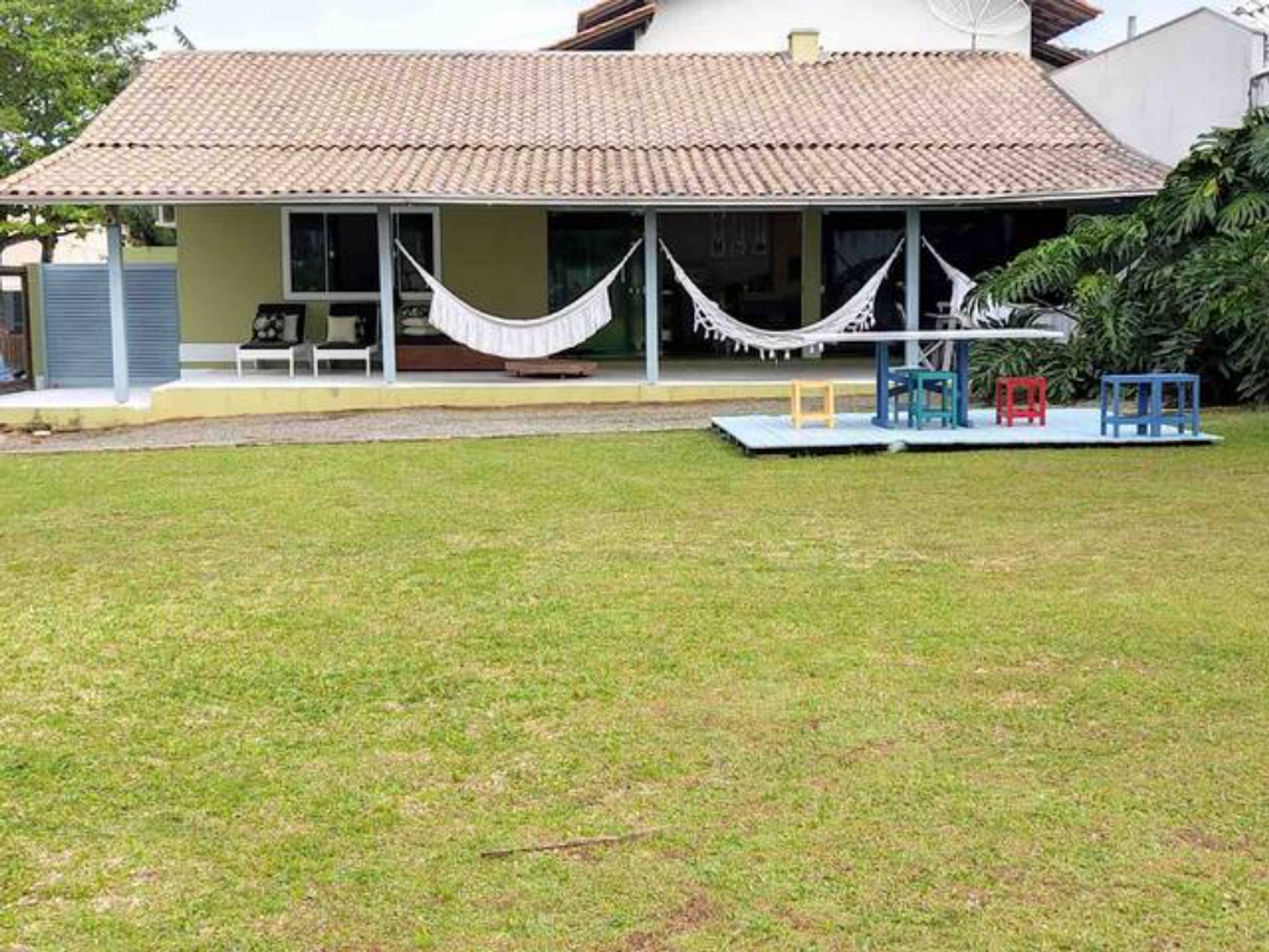 ótimo para quem tem crianças e pet. pátio amplo com um lindo gramado. Cozinha bem equipada. Bem próximo das praias. Uma mais agitada a uma quadra e outra bem calma com sombra natural a tarde em torno de 500mts. O ar é de parede e um pouco barulhento mas o ventilador de teto é silencioso. Recomendo.