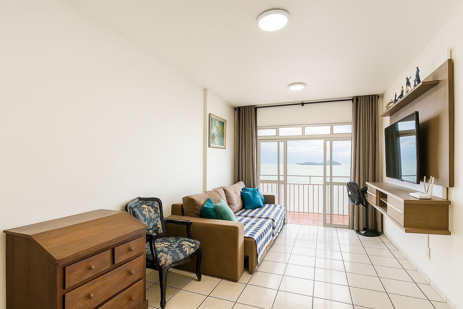 A apenas 50 metros da praia e rodeado por uma ampla variedade de comércios, o apartamento oferece o equilíbrio perfeito entre tranquilidade e praticidade para sua estadia.
