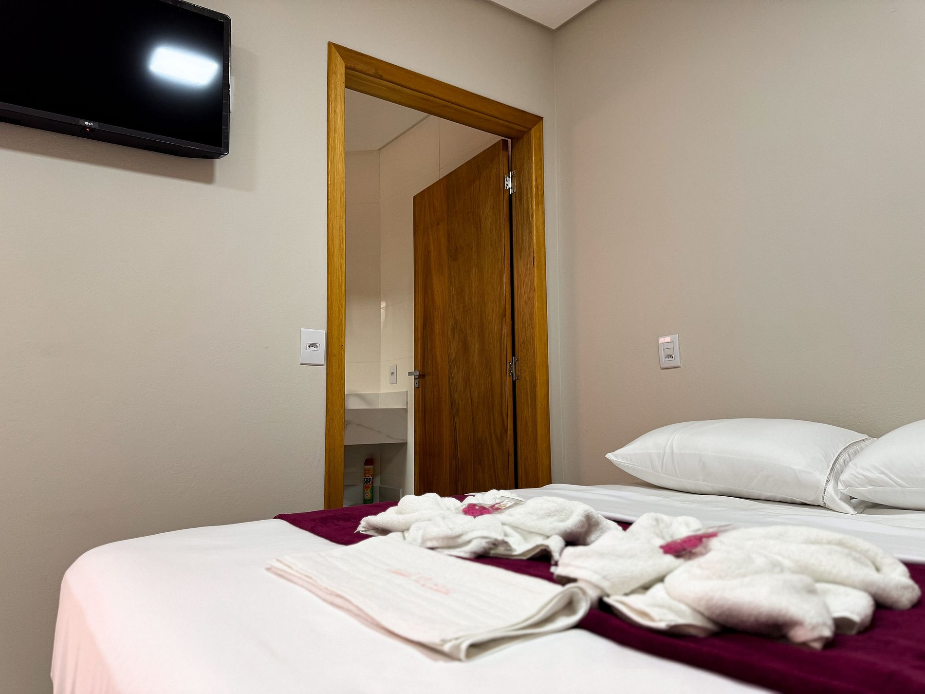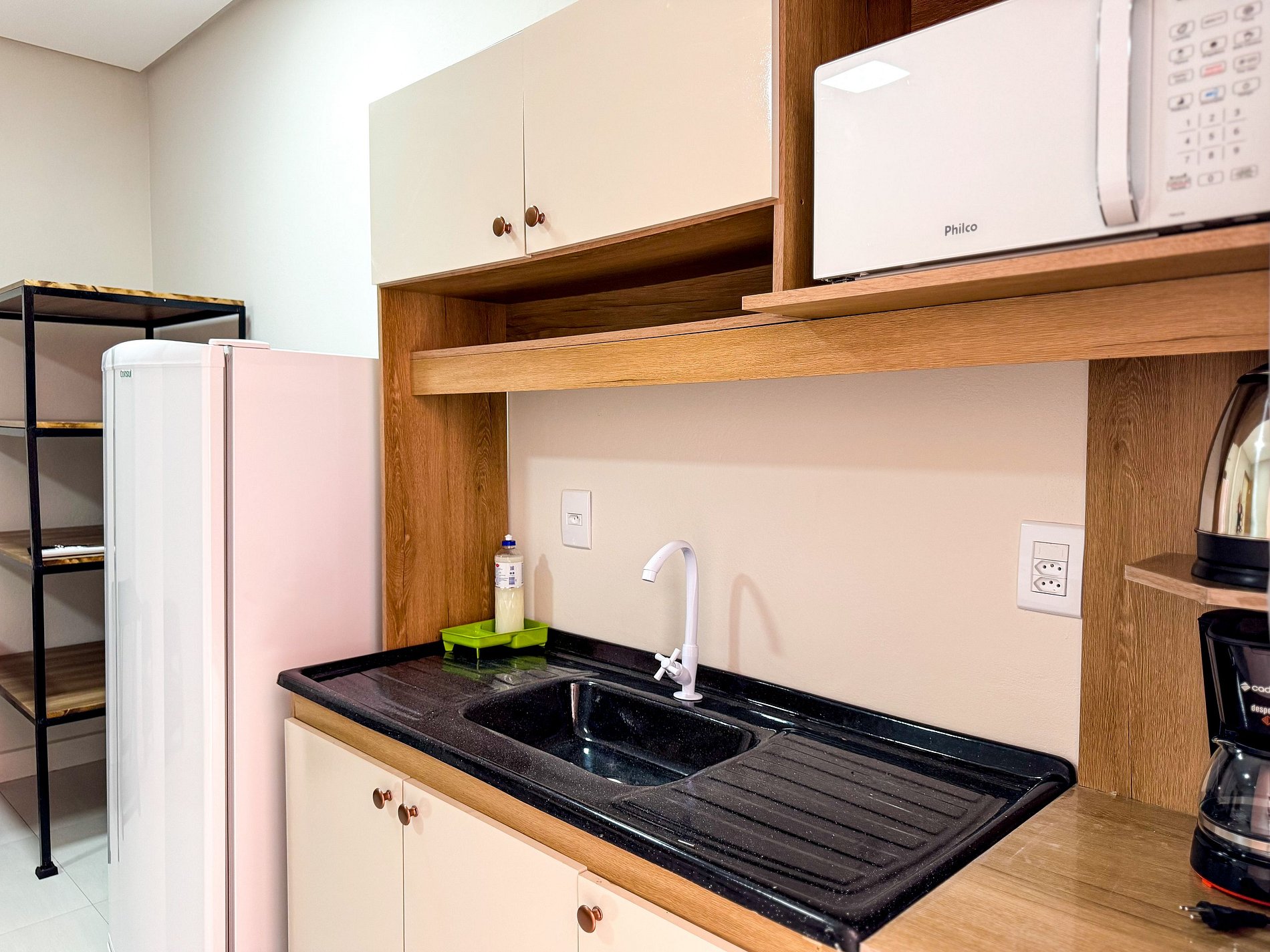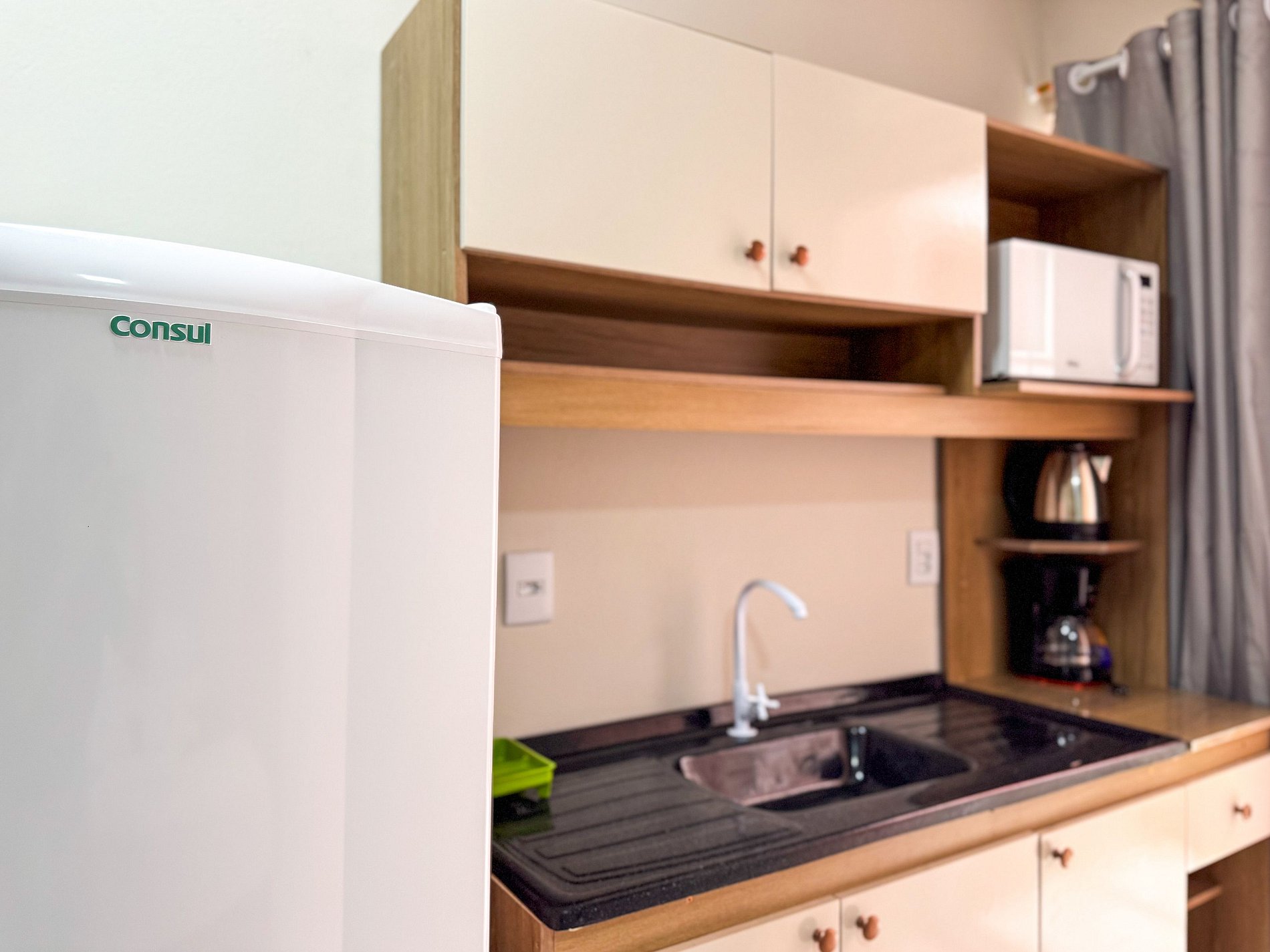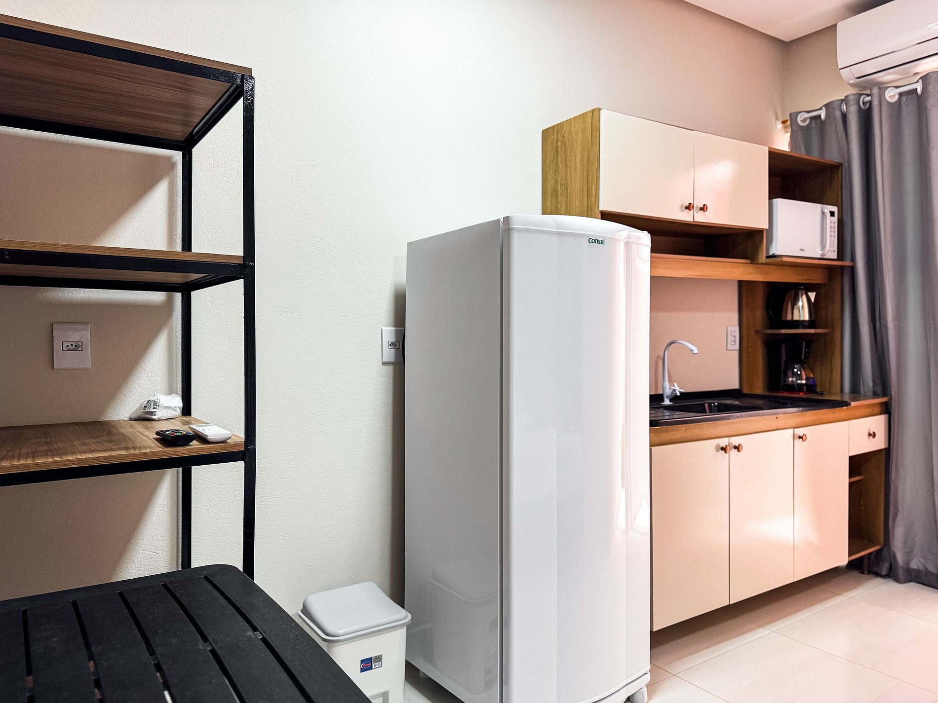 Os apartamentos são equipados com mini cozinha, ideal para preparar suas refeições, além de ar-condicionado, Wi-Fi gratuito e estacionamento privativo para sua comodidade.