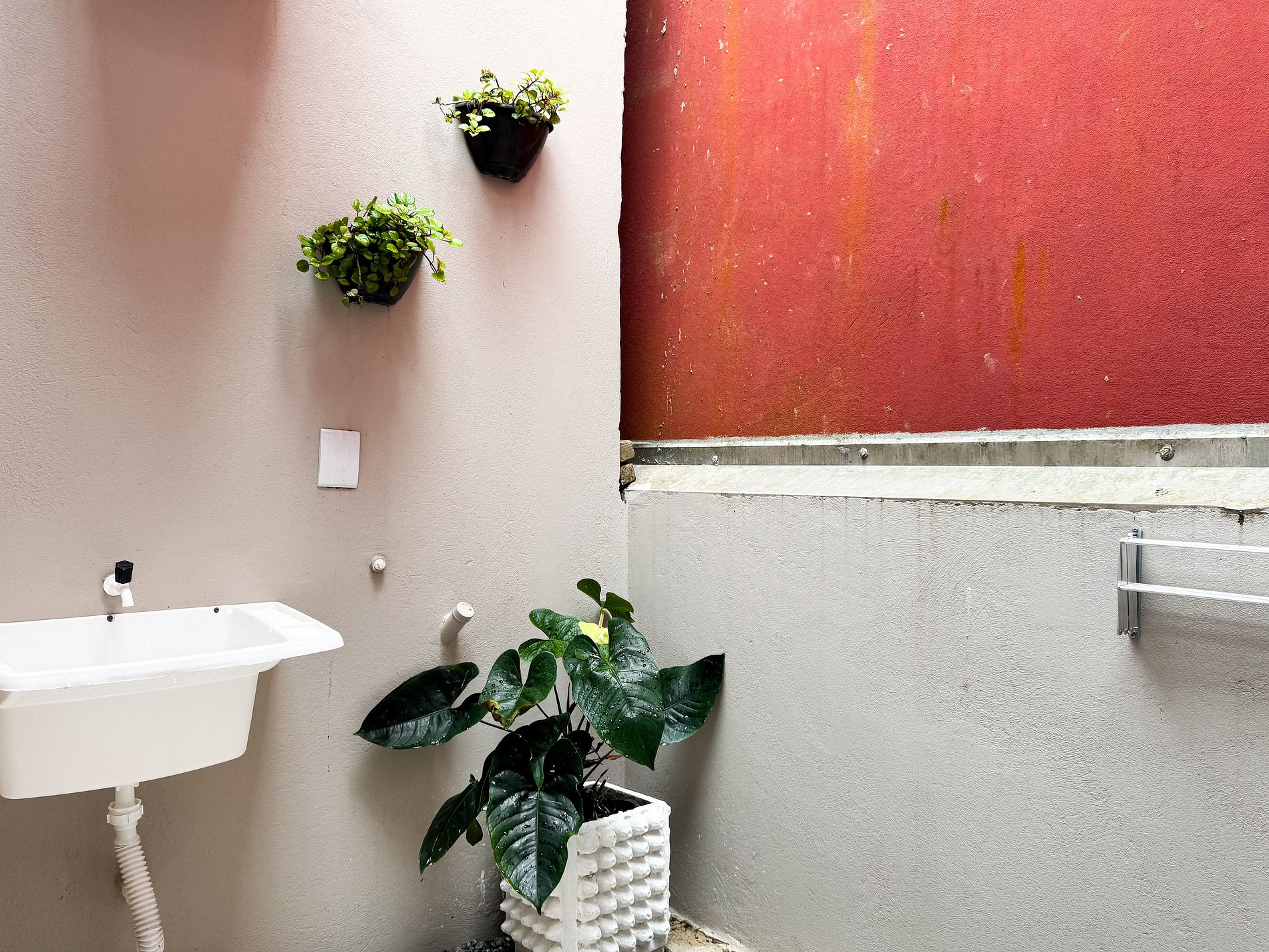A suíte oferece TV, mini cozinha, ar-condicionado e banheiro privativo, área externa com tanque, além de roupas de cama e banho de excelente qualidade, garantindo uma estadia agradável e relaxante.