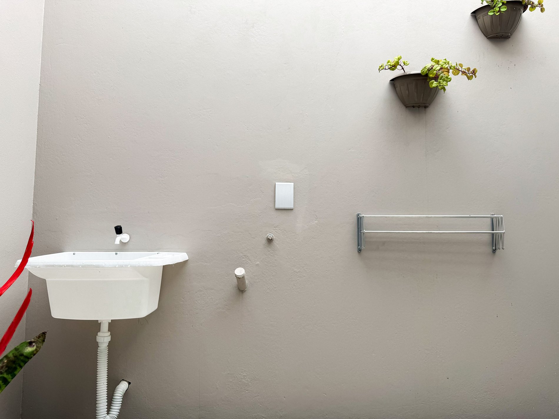 A suíte oferece TV, mini cozinha, ar-condicionado e banheiro privativo, área externa com tanque, além de roupas de cama e banho de excelente qualidade, garantindo uma estadia agradável e relaxante.
