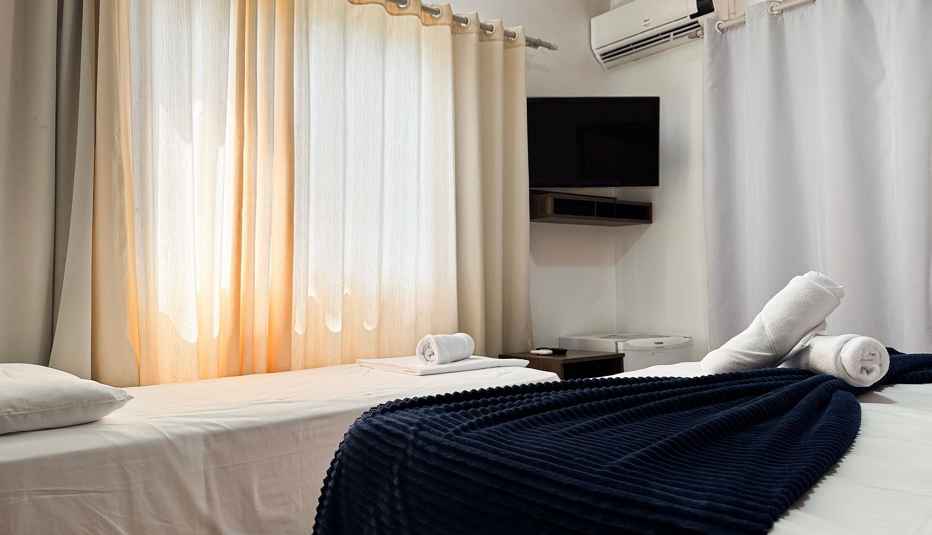 Localizada a apenas 200 metros da encantadora Praia Grande, nossa pousada é o refúgio perfeito para quem busca conforto, praticidade e uma experiência acolhedora. Aqui, cada detalhe foi pensado para tornar sua estadia memorável. Desfrute de quartos cuidadosamente equipados com ar-condicionado, chuveiro com aquecimento a gás, secador de cabelo e camas aconchegantes que garantem noites de descanso revigorantes.