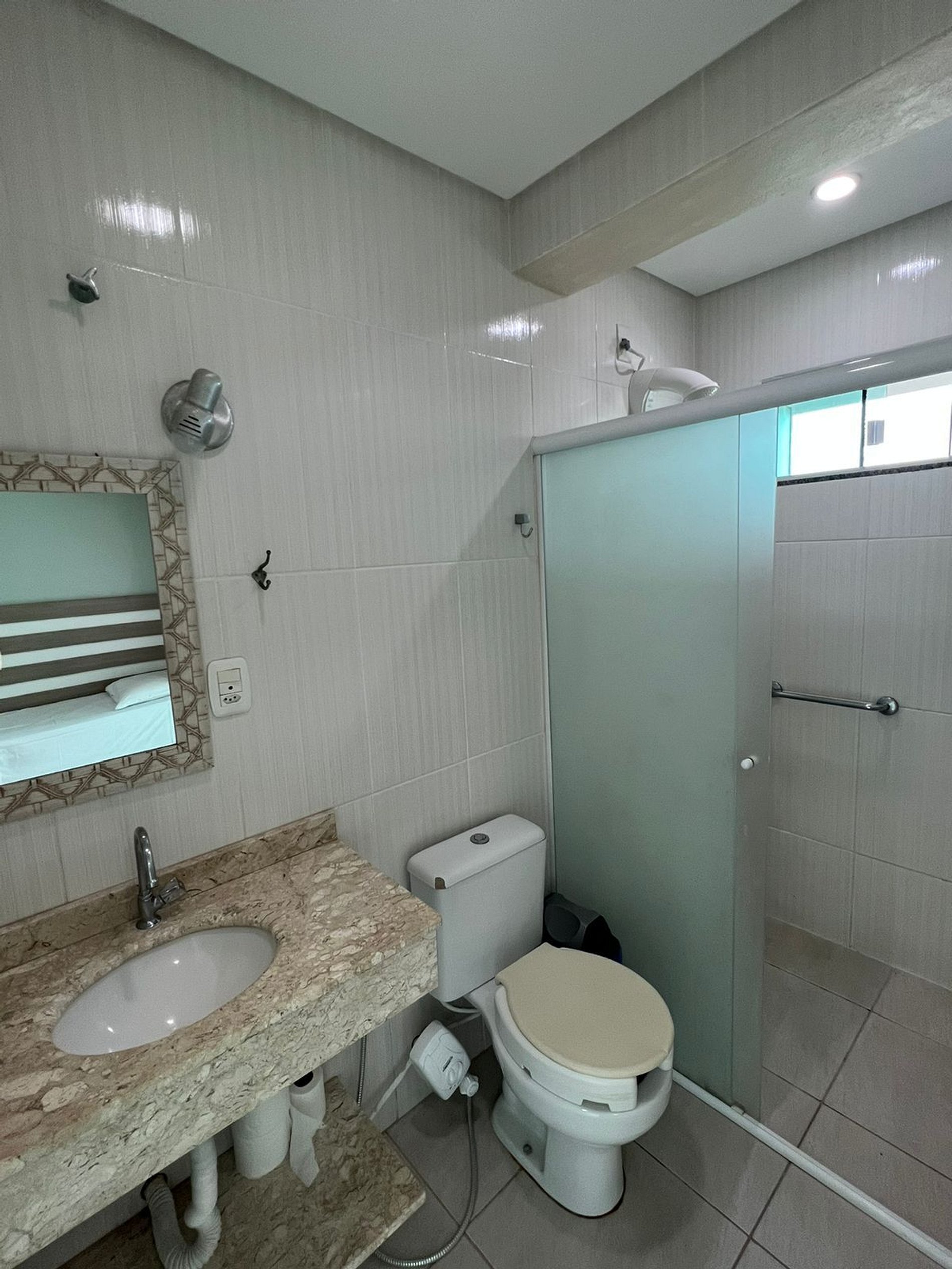 A suíte oferece TV (com canais locais) , frigobar, ar-condicionado e banheiro privativo com chuveiro a gás, garantindo uma estadia agradável e relaxante.