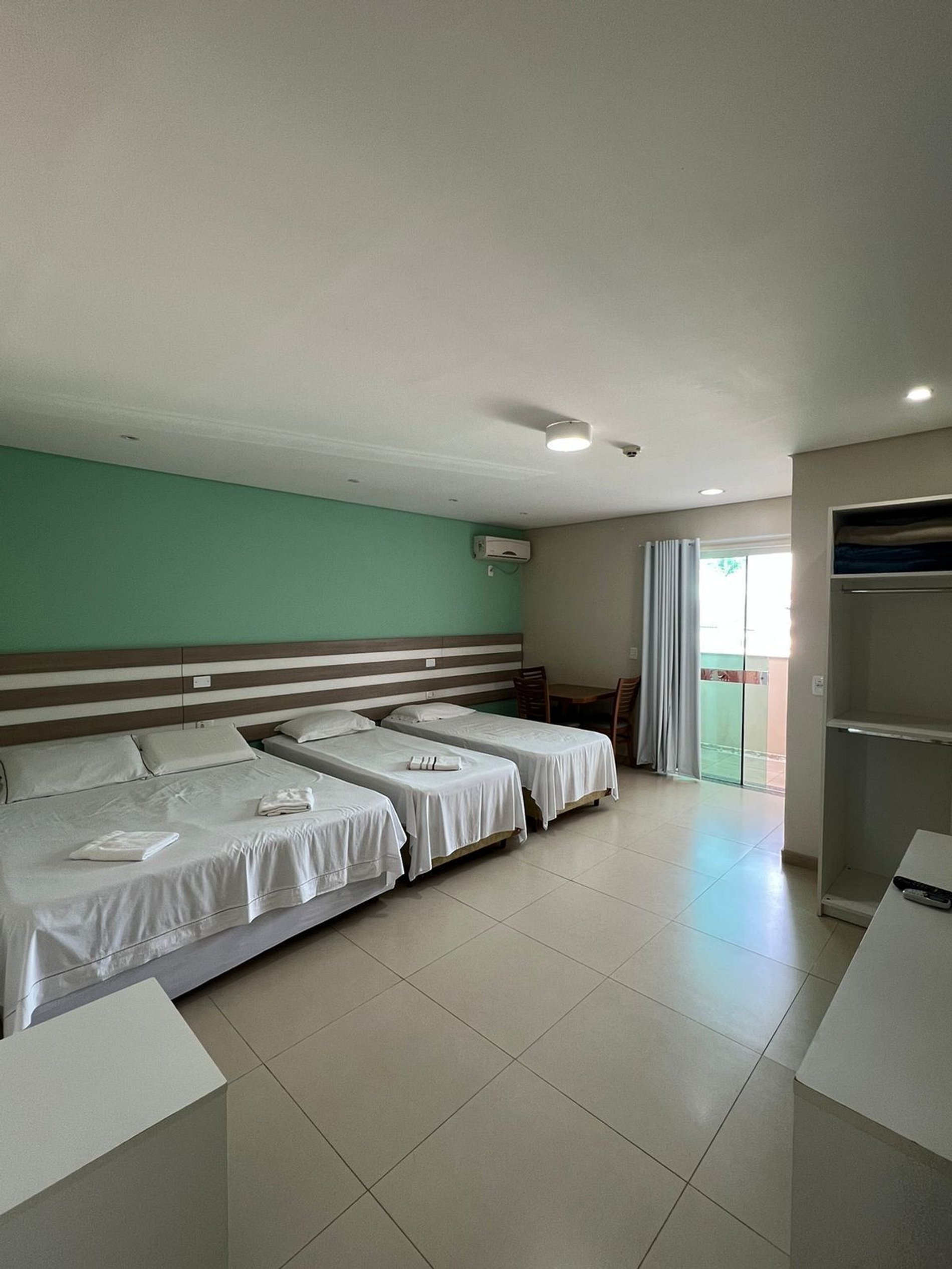 A suíte oferece TV(com canais locais) , frigobar, ar-condicionado e banheiro privativo com chuveiro a gás, garantindo uma estadia agradável e relaxante.