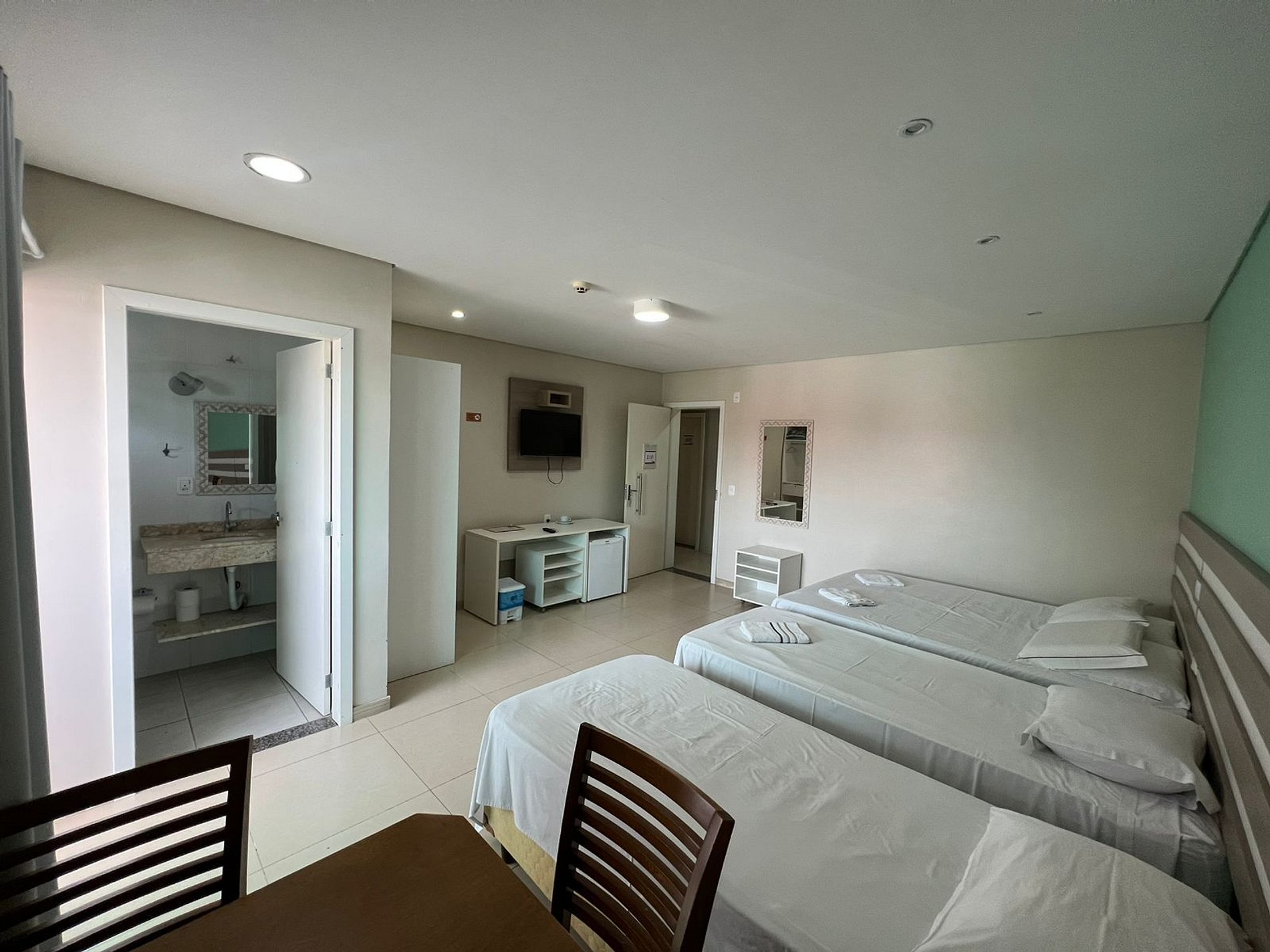 Relaxe em suítes confortáveis com ar-condicionado, TV (com canais locais) e frigobar.
