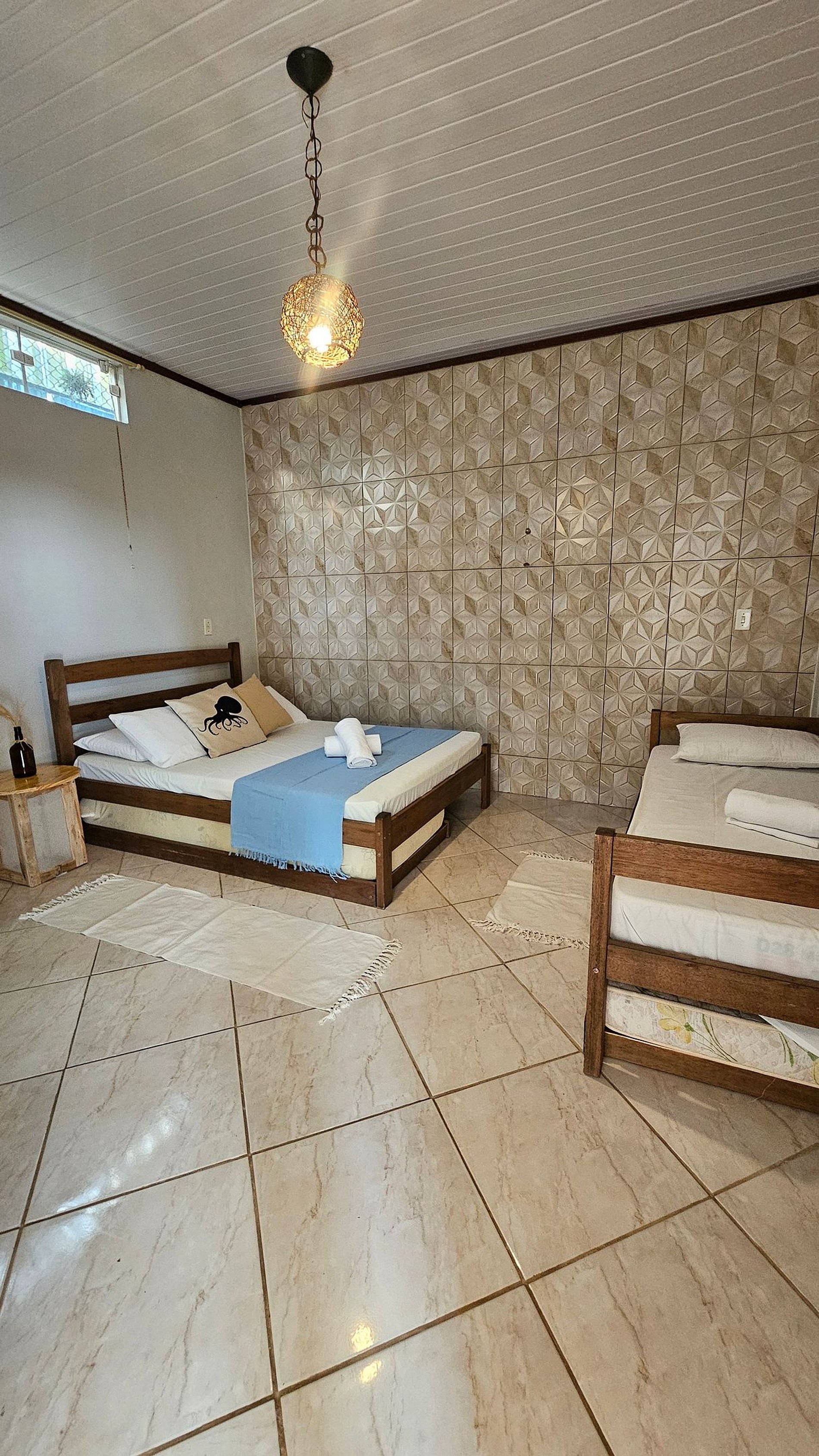 As suítes são privativas, garantindo conforto e privacidade durante a estadia. Cada quarto possui entrada individual e é equipado com itens essenciais para uma experiência prática e agradável.