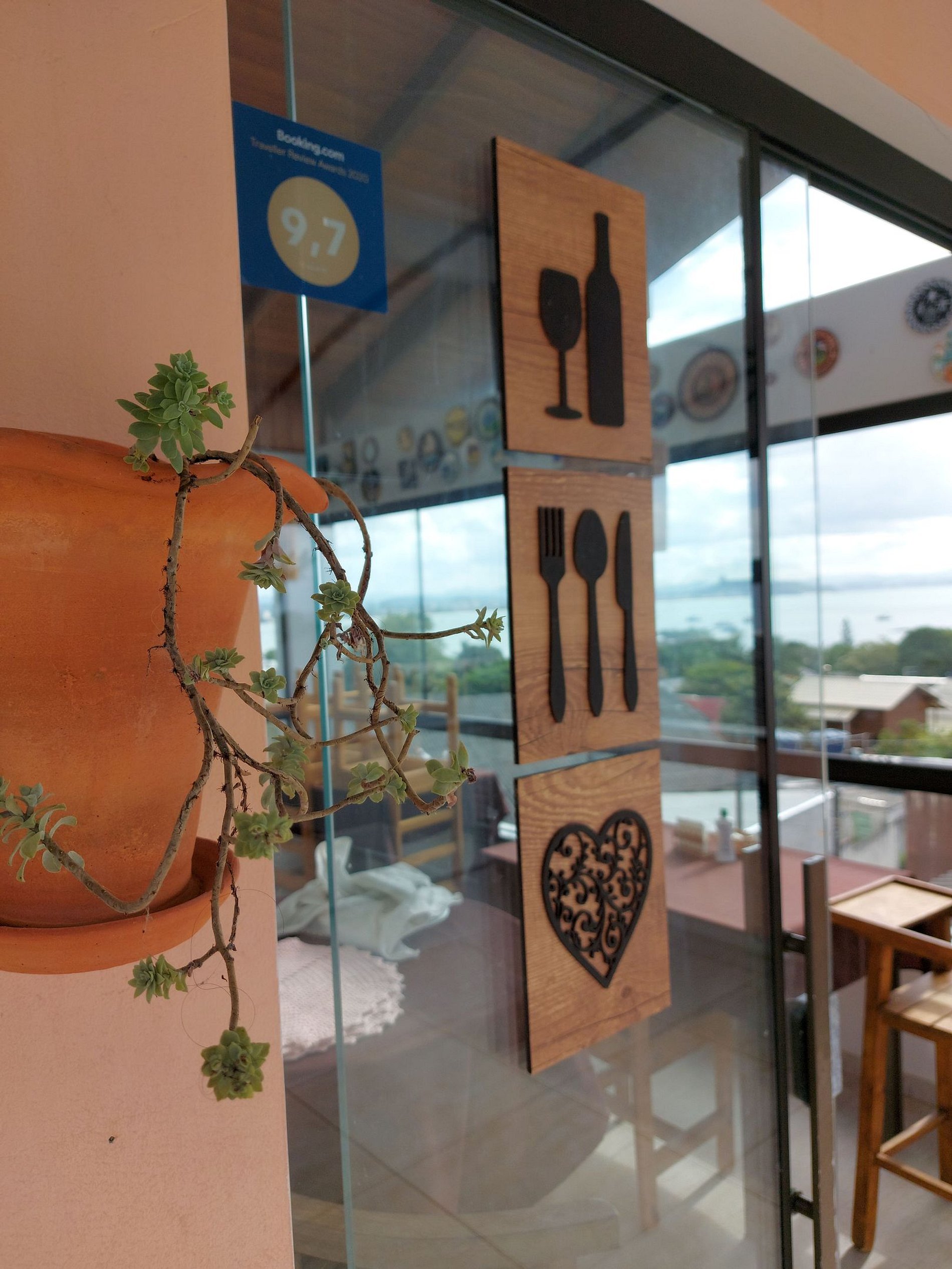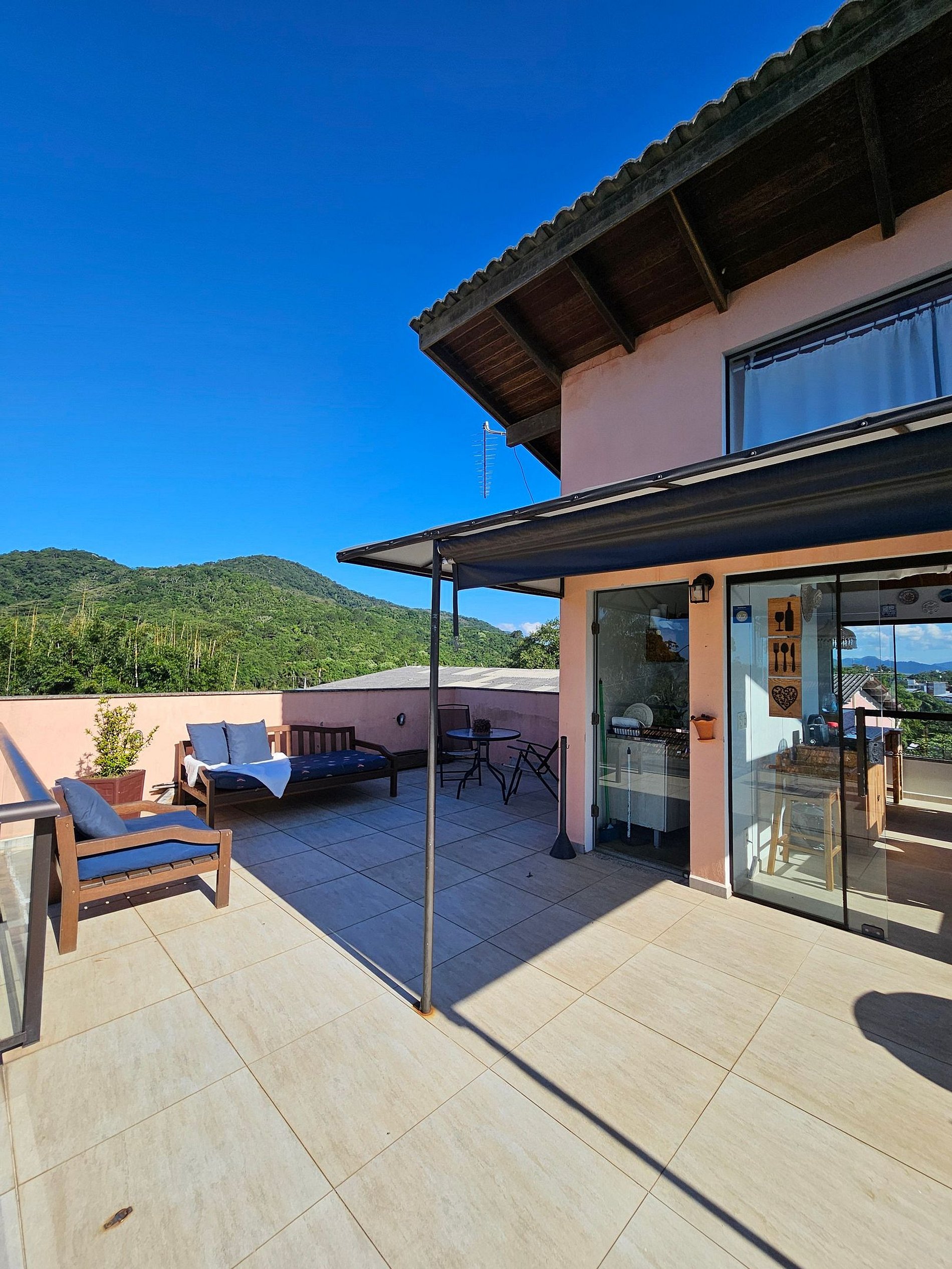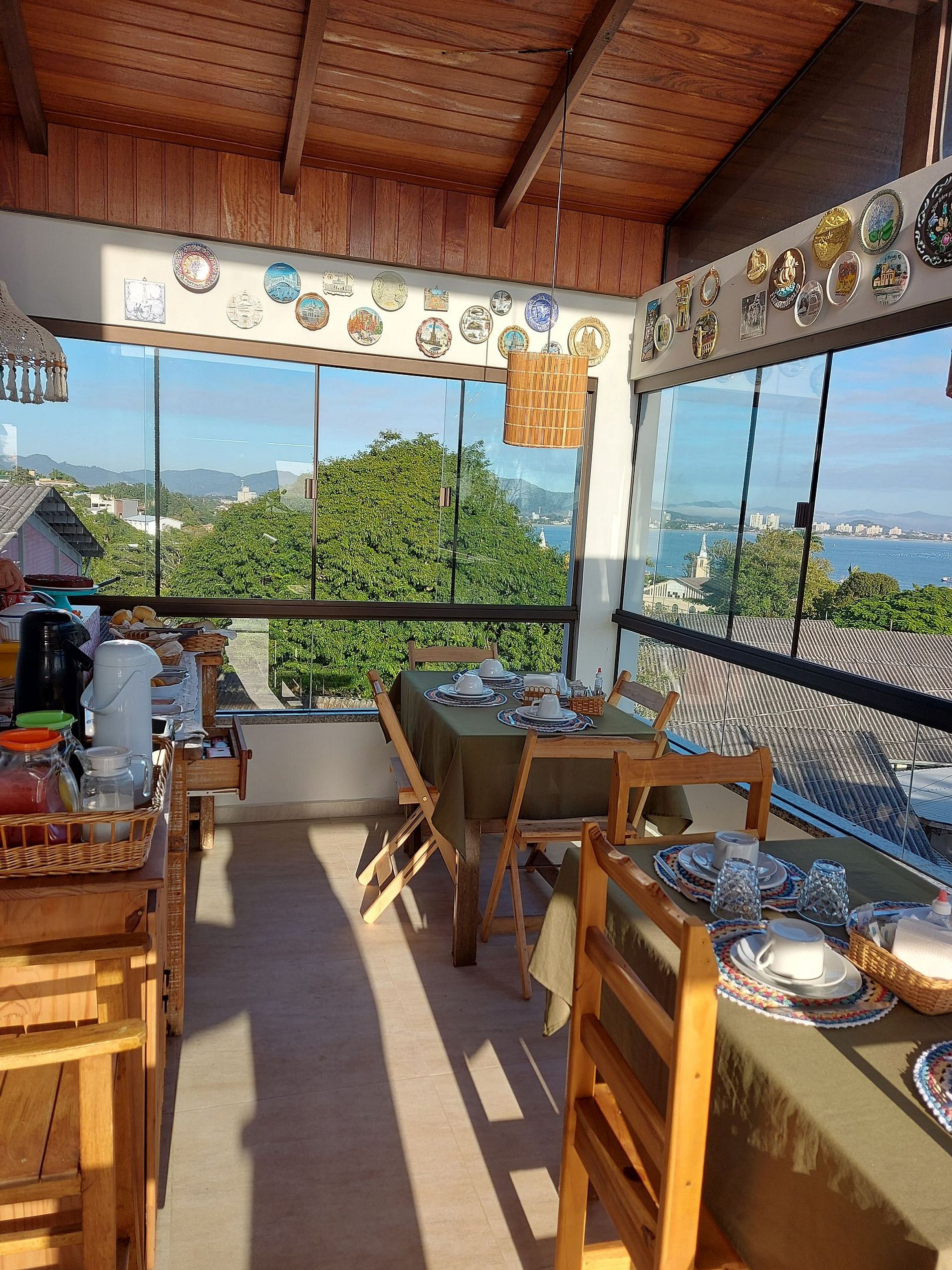 Além disso, o terraço oferece um espaço aconchegante com mesas e cadeiras para você relaxar e apreciar a vista panorâmica da Enseada do Itapocorói.
